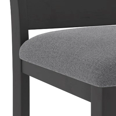 Simple lines, with a farmhouse flair, the Allbritton stool is a perfect addition to your kitchen or dining area. This generously proportioned stool creates comfort and style, with a perfectly positioned low back and a deep upholstered seat. The wood back features a keyhole opening with a rich black finish, perfectly complemented by a Dove Gray linen fabric seat. The balance of rustic farmhouse design elements provides sophistication and style to your home. Assembly required.