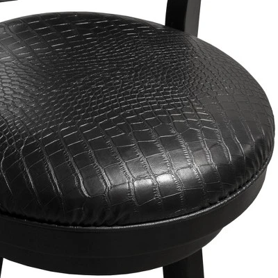 - Black wood bar stool with back, featuring faux Crocodile skin upholstery and 360° swivel seat