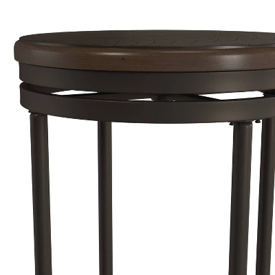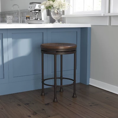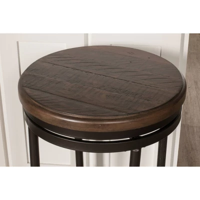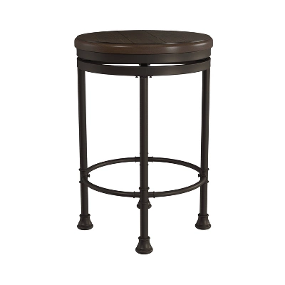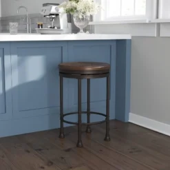 Whether your home’s farmhouse style veers toward the modern or rustic, an industrial touch is always a solid choice. With this Metal Backless Counter Stool, the choice is even stronger. Constructed from dark brown metal, four piped legs with bun feet rise to support a 360-degree swivel seat crafted in a durable wood in a distressed walnut finish. The backless style of this counter stool makes it easy to stow away under islands or countertops when not in use, but it’s bold-yet-minimal style makes it stand out in any room you use it in. Assembly required.