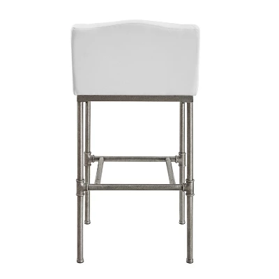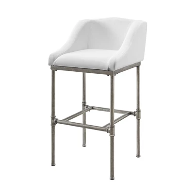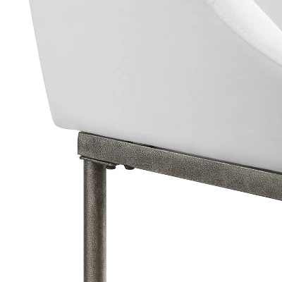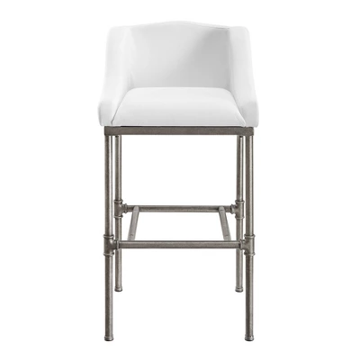 Afraid of bringing white into your design scheme when food or drink are close by? Be bold and brave with this stationary Steel Bar Height Stool that perfectly marries the modern and industrial. Solidly constructed from a wide-set frame made from textured silver metal with pipe-jointed structure, the base of this stool effortlessly supports the low wingback chair fully wrapped in a bright white performance fabric that is stain and wrinkle resistantāmeaning you and your guests never have to worry about ruining your perfectly white bar stool. So, go ahead, break out that red wine. Youāve earned it. Assembly required.