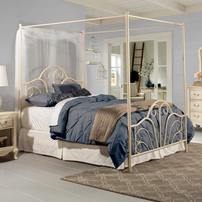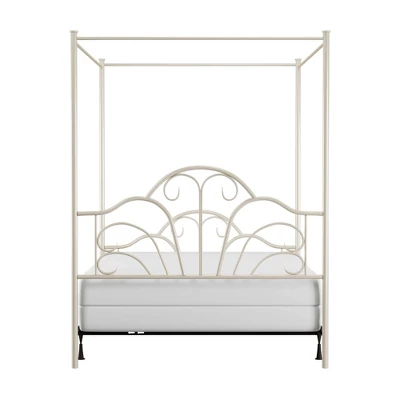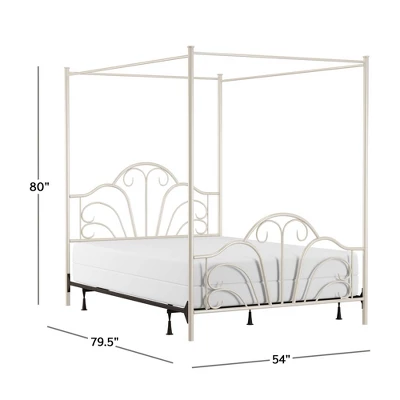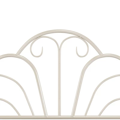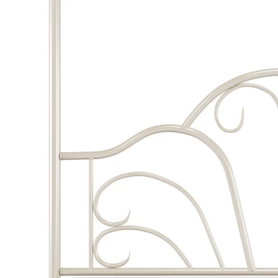 The Dover metal bed is a transitional design that features and exciting scroll design in the headboard and footboard. The bed has a textured cream flat powder finish. Fully welded construction featuring heavy gauge tubing with 1 1/2″ round legs and 1″ round tubing for the headboard and footboard. Headboard is 55″ high, footboard is 45″ high. Includes 6 leg metal bed frame. Requires a mattress and box spring.