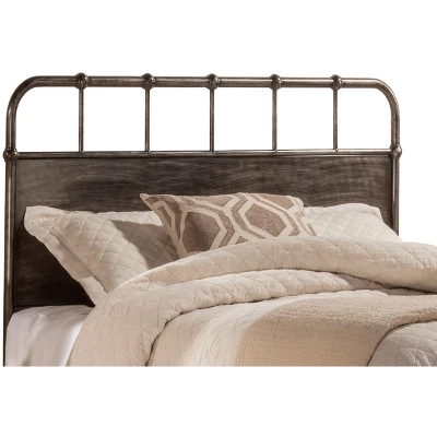 Call it utilitarian chic. Call it classic-contemporary. Either way, this metal headboard delivers a powerful update to the brass beds of old. Timeless and simple, this headboard boasts a chic black finish with gray brushed highlights, a classic barred top rail, and simple round castings. Durable steel construction means you can rest easy knowing your headboard will last for years to come. This metal headboard is an elegant option for a master or guest suite. Includes headboard only. Bed frame, box spring and mattress not included. Available in Queen and King sizes. Assembly required.
