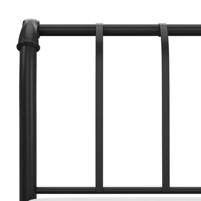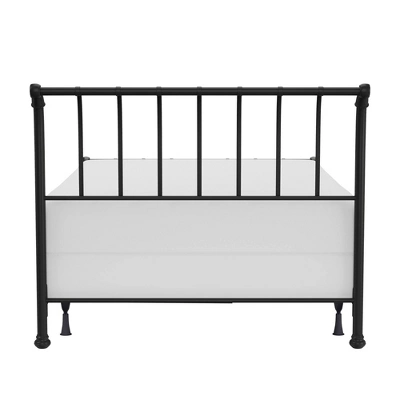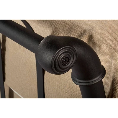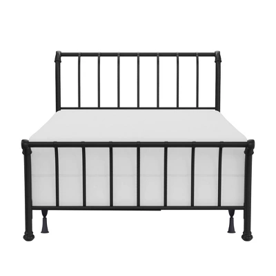 A smartly scaled metal sleigh bed featuring 1 1/8″ strap spindles that wrap around the top rail. This Hillsdale Furniture Full size Janis Sleigh bed have a gentle bend to the side legs to accent the sleigh design theme. The bed consists of completely welded grills using 1 3/4″ legs, with a cast foot, and round rails. Mattress and bedspring required. Dimensions: HB 55W x 45H FB 55W x 28H