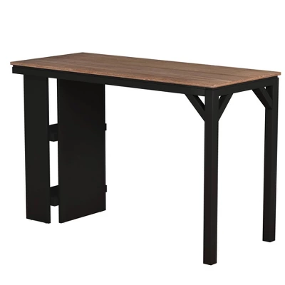 This counter height dining table makes a welcoming eating area with extra storage space on the side. An ideal choice for modern or farmhouse settings, the minimalist table doubles the charm with a black finished base, combined with a Wire Brush oak finished top making for a modern-day charm. The wood constructed table has a pair of open shelves for storage or display space making the most of every inch of space. This rectangular table set easily seats four making it the ideal sitting piece for making good family times. Assembly required.