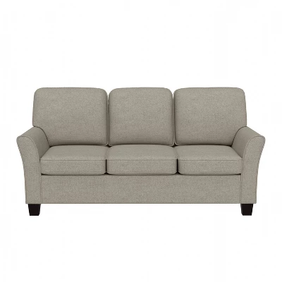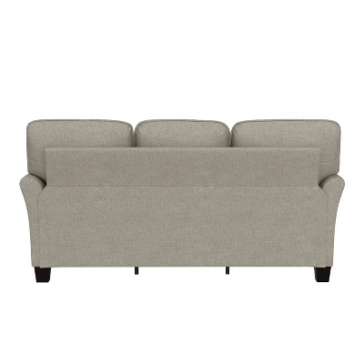 You don’t have to venture to the desert to find an oasis—create one in the heart of your home with this Traditional Couch. With three removable cushions that make cleaning it a breeze, this living room couch seats three comfortably and is fully covered in a cozy, greige upholstery that will make it your favorite place to lounge and relax after a long day. Plus, rolled arms and corded-edge detailing on the cushions give this traditional piece a classic flair that make it adaptable to any decor and able to be enjoyed for years to come. Assembly required.