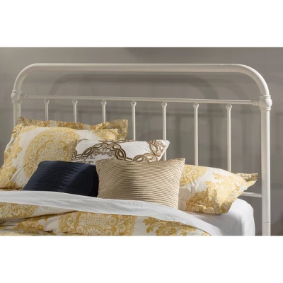 The Hillsdale Furniture Kirkland Twin Headboard boasts a vintage look with a classic rounded square design. Features matching castings and fittings. This twin-size metal headboard has a simple elegance that will compliment a multitude of décor styles. Its Soft White finish is versatile enough to work with most color palettes. Includes headboard only. Footboard and bed frame sold separately. Box spring and mattress required; not included. Assembly required.
