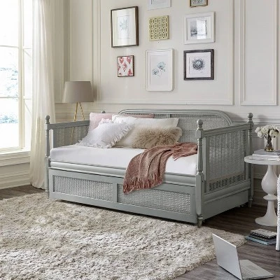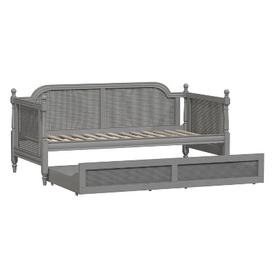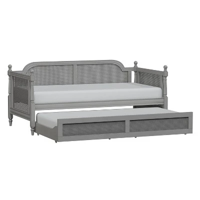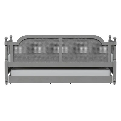 - Rubberwood and cane twin size daybed with trundle unit with French gray finish